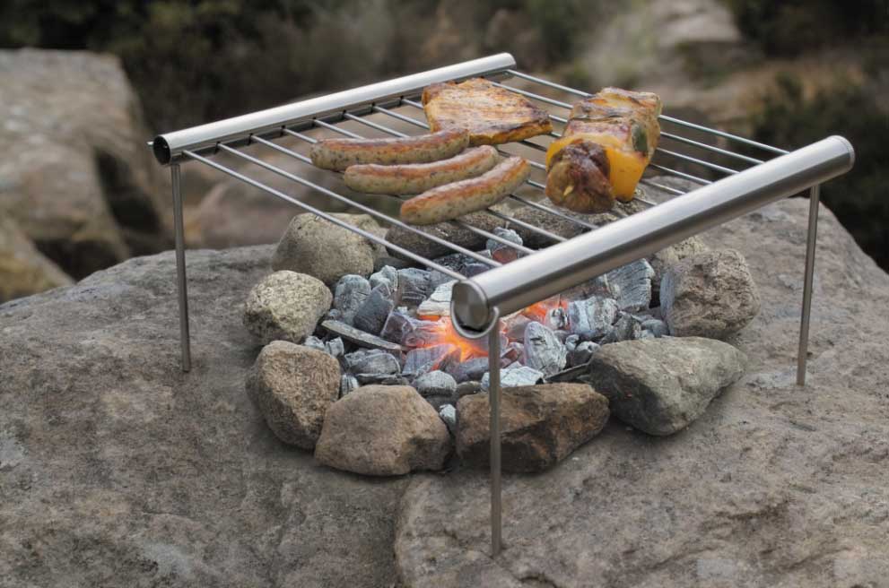لذت بخش ترین کار در طبیعت آشپزی کردن است که با منقل تاشو سفری Mini Grill به راحتی میتوانید غذاهای کبابی و یا گوشتی خود را روی این کباب پز طبخ کنید. کباب پز یا همان منقل سفری مینی گریل یکی از سبک ترین و کم حجم ترین منقل های موجود در بازار است که مناسب برای سفر، کوهنوردی، کمپینگ و طبیعت گردی است. وزن این محصول تنها 323 گرم است که جابجایی را بسیار آسان و راحت کرده است. از ویژگی های این کباب پز جمع شدن تمام متعلقات آن در یکی از لوله های استوانه ای است. جنس به کار رفته شده در این کباب پز از استیل ضد زنگ و باکیفیت می باشد. این منقل دارای 4 میله فلزی به عنوان پایه، 2 عدد لوله توخالی به عنوان میله های دو طرف، 10 عدد میله برای قسمت وسط منقل و در آخر یک درپوش بند دار جهت قرار دادن تمام متعلقات به داخل لوله می باشد.